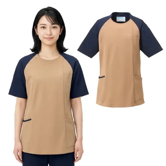 エアリーな風合いの素材を使用したNewスクポロ®です。超軽量ポリエステル素材を採用し、長時間の着用でも身体への負担を軽減します。ニュアンスのある配色デザインで、医療・介護・サービス現場にやさしく調和し、見た目にも清潔感と安心感を与えます。