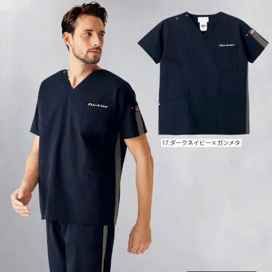 Dickies MEDICALの機能性とデザイン性を融合させたユニセックス対応スクラブです。オールフレックスマルチストレッチツイル素材を採用し、ポリエステル100%ながら高い伸縮性と軽快な着用感を実現。動きやすさを重視した設計で、忙しく動き回る医療・介護・検査現場でもストレスなく快適な業務をサポートします。