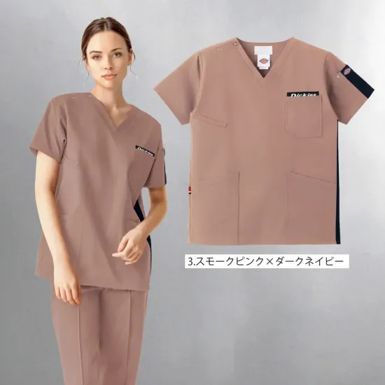Dickies MEDICALの機能性とデザイン性を融合させたユニセックス対応スクラブです。オールフレックスマルチストレッチツイル素材を採用し、ポリエステル100%ながら高い伸縮性と軽快な着用感を実現。動きやすさを重視した設計で、忙しく動き回る医療・介護・検査現場でもストレスなく快適な業務をサポートします。