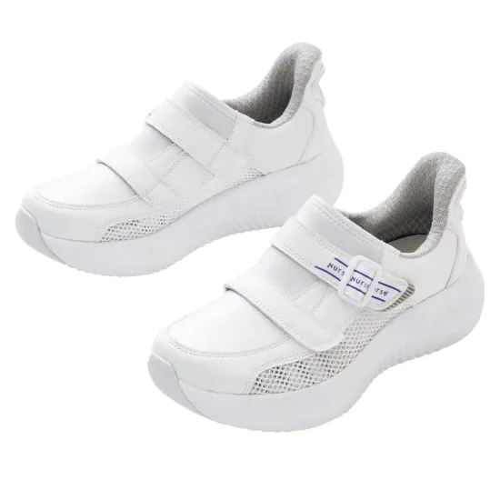 履いた瞬間に思わず歩き出したくなる極ふわクッションが特長のユニセックス対応ナースシューズです。EVAクッションソールによる雲の上を歩くような履き心地と広いメッシュ構造で快適な通気性を実現。抗菌防臭加工と3Eワイズ設計により長時間の現場作業でも足元の快適さをしっかり支えます。