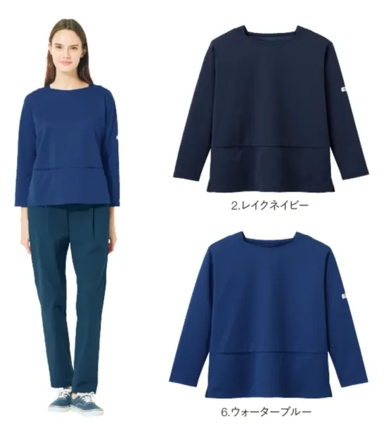 マチつきでチラ見えの心配がない安心設計のボートネックデザイン。