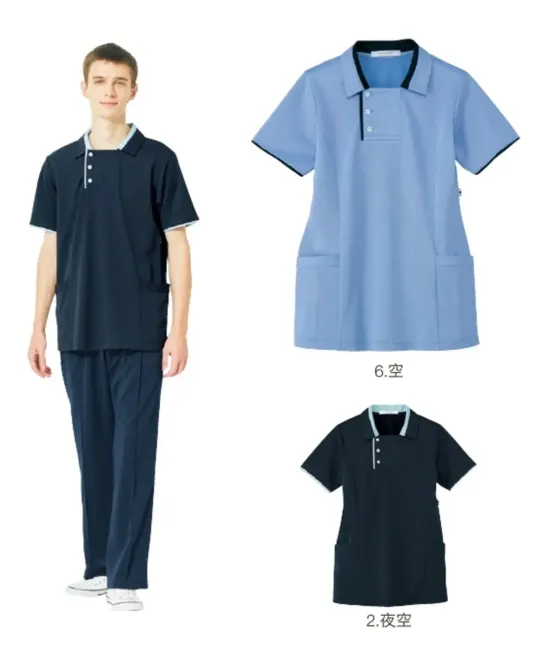 医療白衣com 介護衣 半袖ポロシャツ ハンズオン HM2829 半袖ロングポロシャツ※掲載価格は変更される場合がございます。