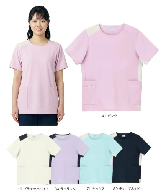 ・品番:8002・品名:ニットスクラブ・性別:男女兼用・カラー:10 プラチナホワイト、34 ライラック、41 ピンク、71 サックス、89 ディープネイビー・サイズ:SS、S、M、L、LL、3L、4L、5L