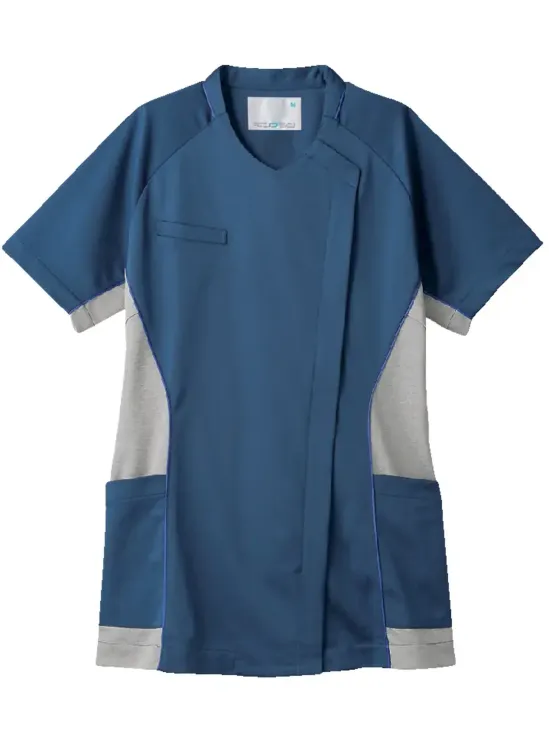 サイドの配色切り替えに汗染み防止素材を採用し、見た目の清潔感と快適さを両立したレディーススクラブ。伸縮性に優れた素材が動きにしなやかにフィットし、スムーズな動作をサポート。アクティブな現場でも安心して着用できる一着です。