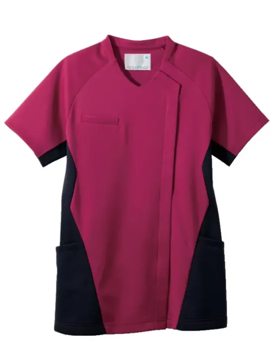 ・PHSや名札用ストラップのズレを軽減するストラップホールド付き・ポケット内のループは消毒液ホルダーも取り付け可能・着脱しやすい肩口スナップボタン仕様・スムーズな動作を支えるパターン設計・吸汗速乾性に優れ、快適さをキープ・制菌加工により清潔感を保ちやすい