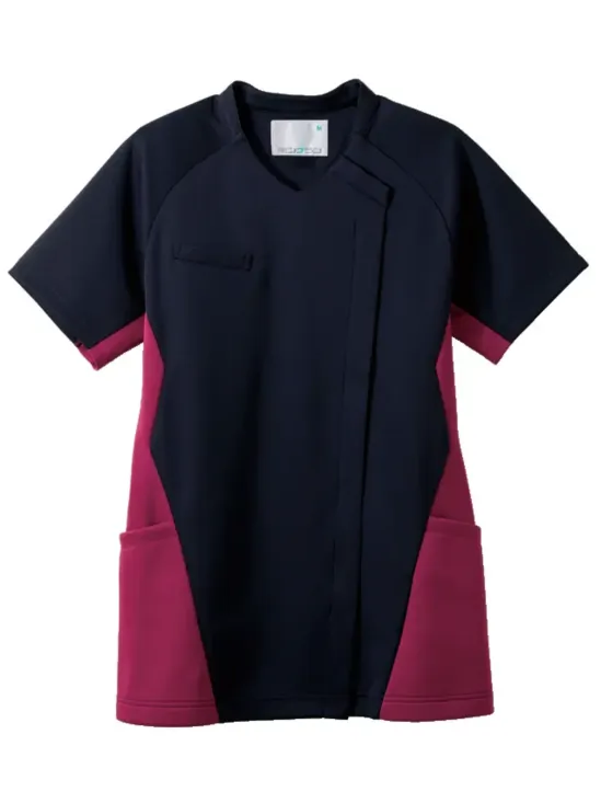 ・PHSや名札用ストラップのズレを軽減するストラップホールド付き・ポケット内のループは消毒液ホルダーも取り付け可能・着脱しやすい肩口スナップボタン仕様・スムーズな動作を支えるパターン設計・吸汗速乾性に優れ、快適さをキープ・制菌加工により清潔感を保ちやすい