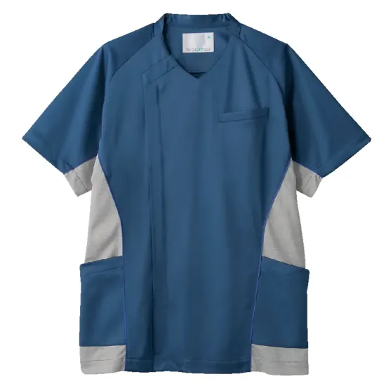 サイドの配色切り替えに汗染み防止素材を採用し、見た目の清潔感と快適さを両立したメンズスクラブ。伸縮性に優れた素材が動きにしなやかにフィットし、スムーズな動作をサポート。アクティブな現場でも安心して着用できる一着です。