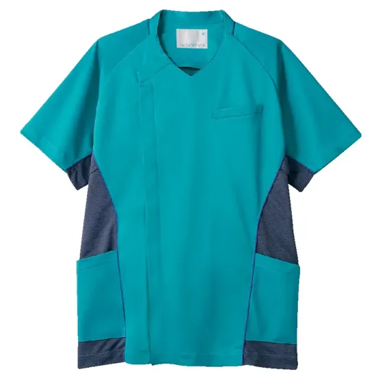 サイドの配色切り替えに汗染み防止素材を採用し、見た目の清潔感と快適さを両立したメンズスクラブ。伸縮性に優れた素材が動きにしなやかにフィットし、スムーズな動作をサポート。アクティブな現場でも安心して着用できる一着です。