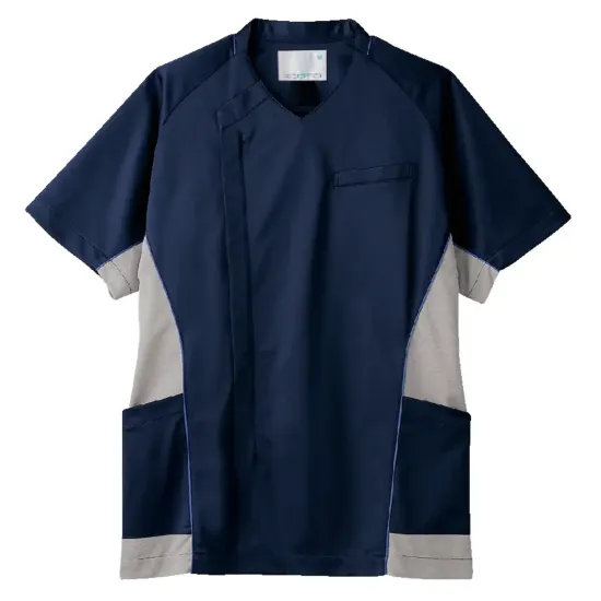 サイドの配色切り替えに汗染み防止素材を採用し、見た目の清潔感と快適さを両立したメンズスクラブ。伸縮性に優れた素材が動きにしなやかにフィットし、スムーズな動作をサポート。アクティブな現場でも安心して着用できる一着です。