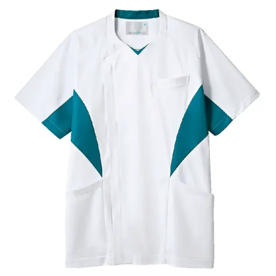 動きやすさと清潔感を兼ね備えたメンズ半袖スクラブ。約3倍のストレッチ性を持つハイパーストレッチトリコットを使用し、快適な着心地を実現。配色ラインの視覚効果でシャープな印象を与え、すっきりとしたシルエットでスマートに着こなせます。