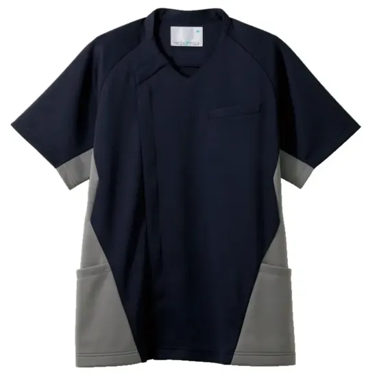 ・PHSや名札用ストラップのズレを軽減するストラップホールド付き・ポケット内のループは消毒液ホルダーも取り付け可能・着脱しやすい肩口スナップボタン仕様・スムーズな動作を支えるパターン設計・吸汗速乾性に優れ、快適さをキープ・制菌加工により清潔感を保ちやすい
