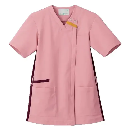 ・天然繊維のようなマットな質感と軽量・ストレッチ性を持つタスランストレッチトロ素材を採用・襟元のテープの出し入れで日勤夜勤を切り替えられる・肩甲骨まわりの突っ張り感を軽減する機能性パターン設計・PHSなどのストラップが肌に直接触れにくいループ付き・右脇ポケットはスマートフォンなど重量のある小物も収納可能・左腰ポケットに小物を整理しやすい内ポケット付き・左右ウエストに鍵や消毒液などを掛けられるループ付き・長めのスリットで動きやすいサイドベンツ入り