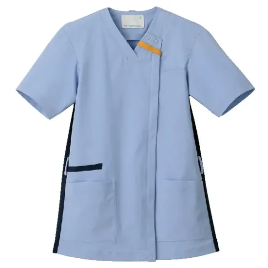 ・天然繊維のようなマットな質感と軽量・ストレッチ性を持つタスランストレッチトロ素材を採用・襟元のテープの出し入れで日勤夜勤を切り替えられる・肩甲骨まわりの突っ張り感を軽減する機能性パターン設計・PHSなどのストラップが肌に直接触れにくいループ付き・右脇ポケットはスマートフォンなど重量のある小物も収納可能・左腰ポケットに小物を整理しやすい内ポケット付き・左右ウエストに鍵や消毒液などを掛けられるループ付き・長めのスリットで動きやすいサイドベンツ入り