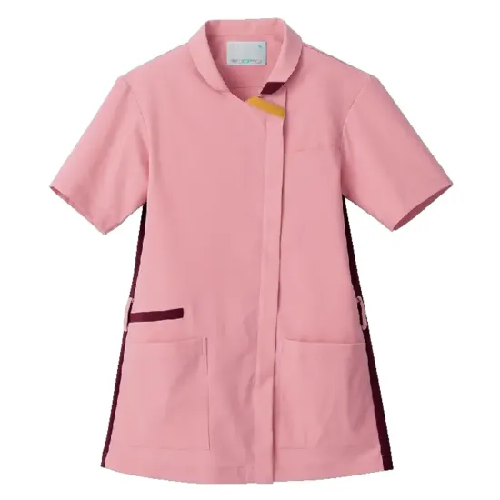・天然繊維のようなマットな風合いと軽さを備えたタスランストレッチトロ素材を採用・小さな襟とZIP-UP仕様で男女兼用でもすっきりした印象・日勤夜勤がひと目で分かる配色切替仕様でテープの出し入れにより簡単チェンジ・肩甲骨まわりの突っ張りを軽減する機能性パターン設計・右脇ポケットはスマートフォンなど重量のある小物も収納可能・左腰ポケットに小物を整理しやすい内ポケット付き・左右ウエストに鍵や消毒液などを掛けられるループ付き・長めのスリットで動きやすいサイドベンツ入り
