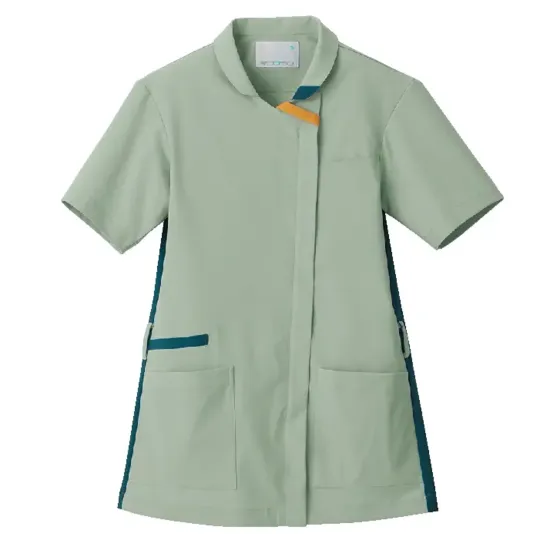 男女を問わず着こなせるベーシックデザインに小さな襟とサイド配色を効かせたZIP-UPタイプの男女兼用スクラブ。タスランストレッチトロ素材を使用しポリエステル100%ながら天然繊維のような質感と軽さを実現。伸縮性と吸汗速乾性に優れ忙しい現場でも快適な着用感を保ちます。